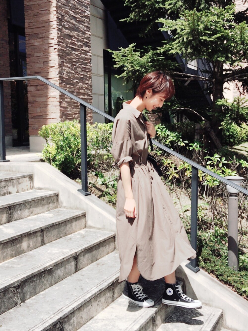 シャツワンピ+スニーカーで ラフなお買い物スタイルにしてみました*.°