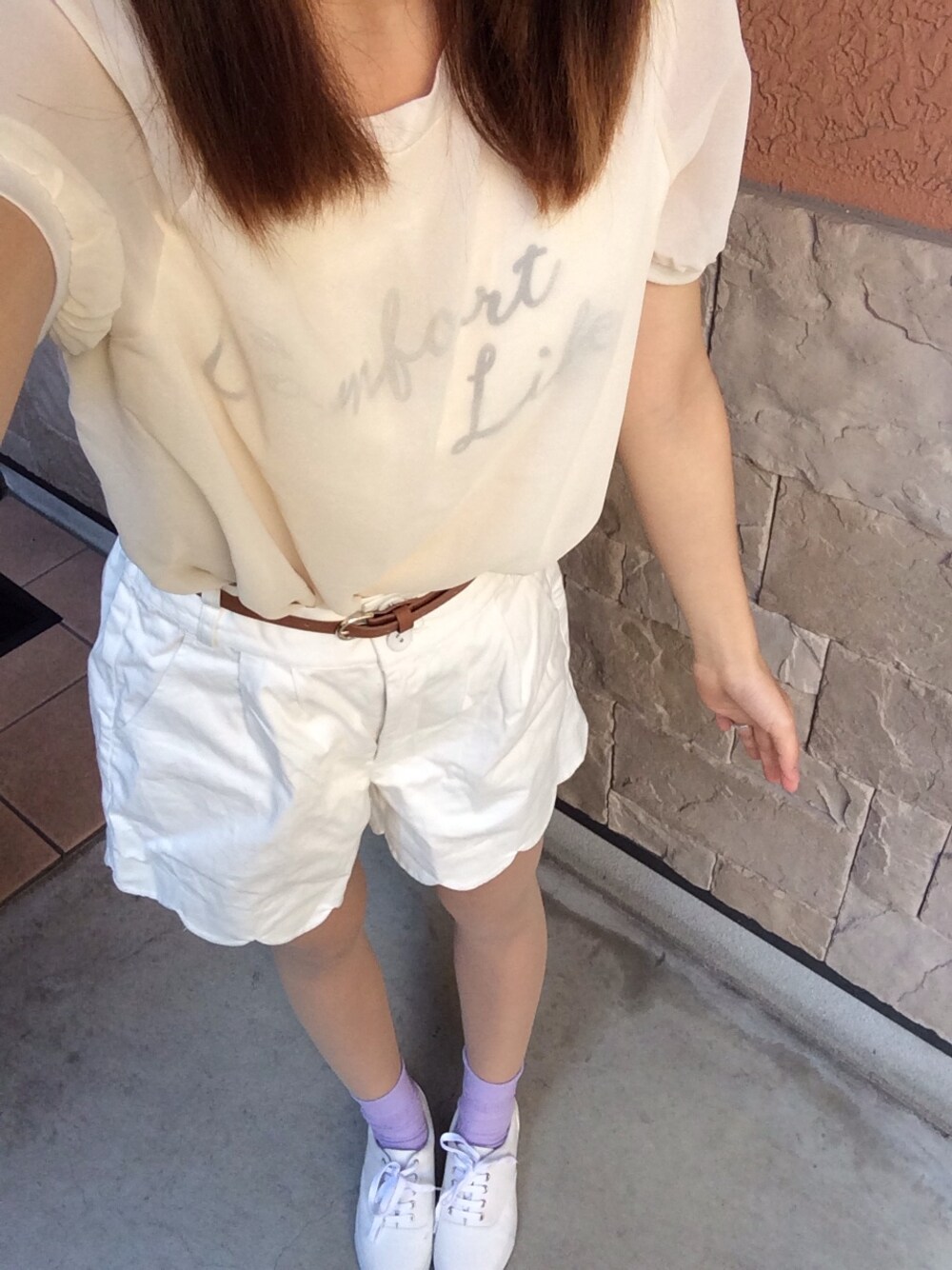 マジェDay! 全体的に薄色なので、可愛らしいStyleになってるかな? ついでに言うと、ピアスもマジェ♪ トップス、ボトムス、スニーカー、ピアス:MAJESTIC LEGON 靴下:チュチュアンナ