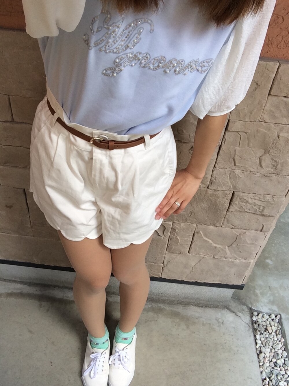 MAJESTIC LEGON day!!! 私が一番気に入ってるTシャツは 袖もたぷっとした感じが可愛くて好き♡ 白とライトグリーン、ライトブルーで さっぱり涼しげコーデ(*´˘`*) 靴下にはビーズインで歩く度に ジャラジャラゆうのもまたツボ♡ トップス:MAJESTIC LEGON ボトムス:MAJESTIC LEGON スニーカー:MAJESTIC LEGON ベルト:MAJESTIC LEGON 靴下:チュチュアンナ