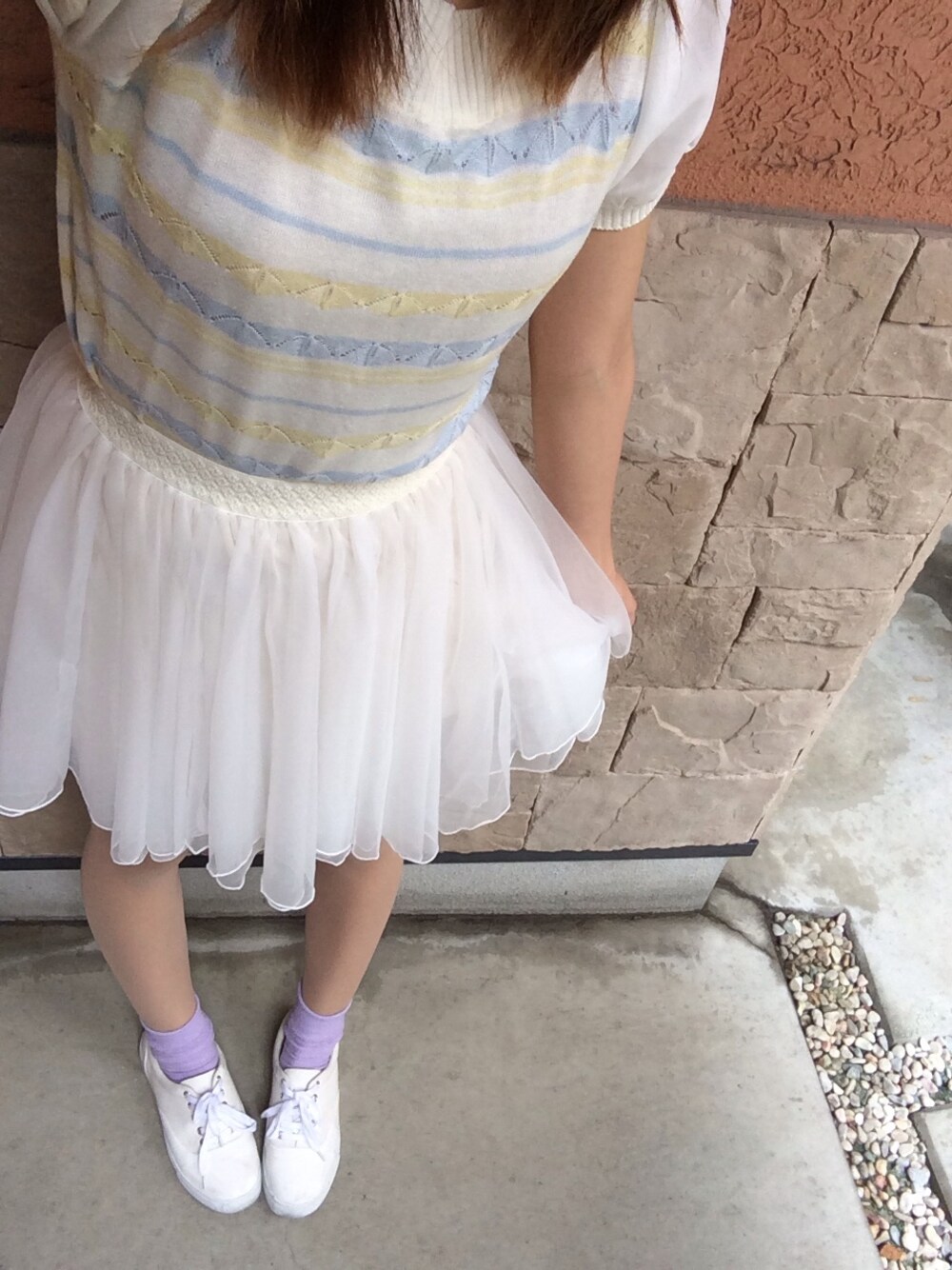 MAJESTIC LEGONで白基調コーデ♪ 柔らかな感じがお気に入り♡ トップス:MAJESTIC LEGON スカート:NICE CLAUP スニーカー:MAJESTIC LEGON 靴下:チュチュアンナ
