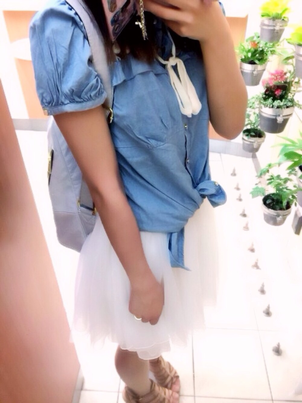 今日は雨で肌寒かったけど、 写真撮った時は暑かったので アウター着てないですw トップスが長めでこのスカートと合わないから結んでます! 横から見たら ん? てなるけど、 前から見ると普通なんです笑 このチュールスカートふわふわで お気に入り〜♡ やつぱり私はスカート大好きだ! パンツよりスカートの着数3倍以上あります。笑 アウター:INGNI トップス:INGNI スカート:NICE CLAP サンダル:PAGEBOY リュック:NICECLAP