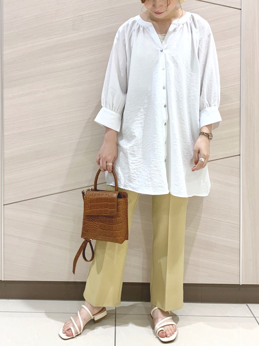 チュニックシャツにセンタープレスパンツで トレンドのコーディネートです♡ 小物できちんと感◎ Instagram @__.shuri___