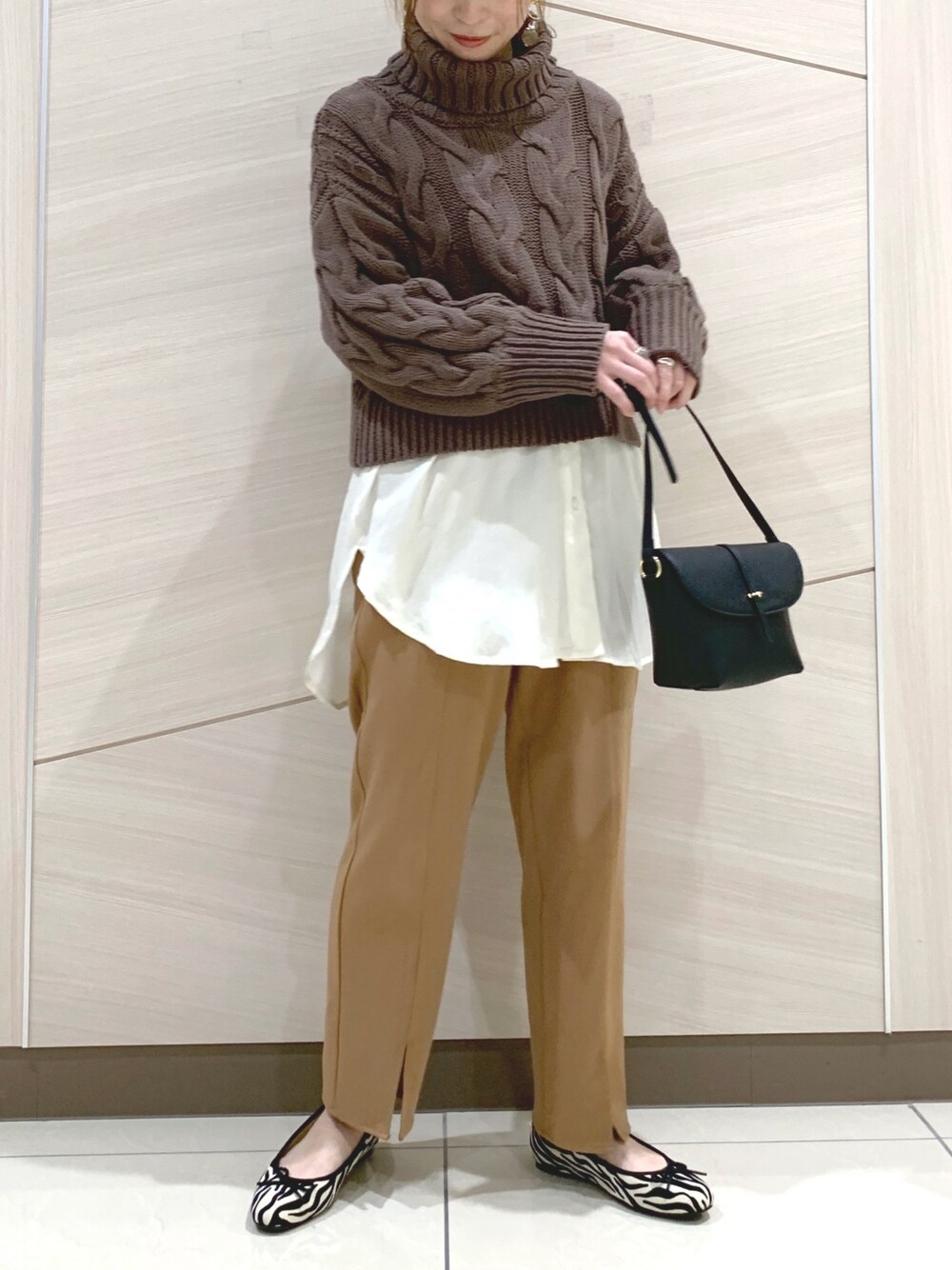 𝚜 𝚑 𝚞 𝚛 𝚒のニット/セーター「ビッグケーブルショートタートルネックプルオーバー」を使ったコーディネート
