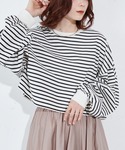 𝚜 𝚑 𝚞 𝚛 𝚒のTシャツ/カットソー「ボーダーバルーンスリーブショート丈プルオーバー」を使ったコーディネート