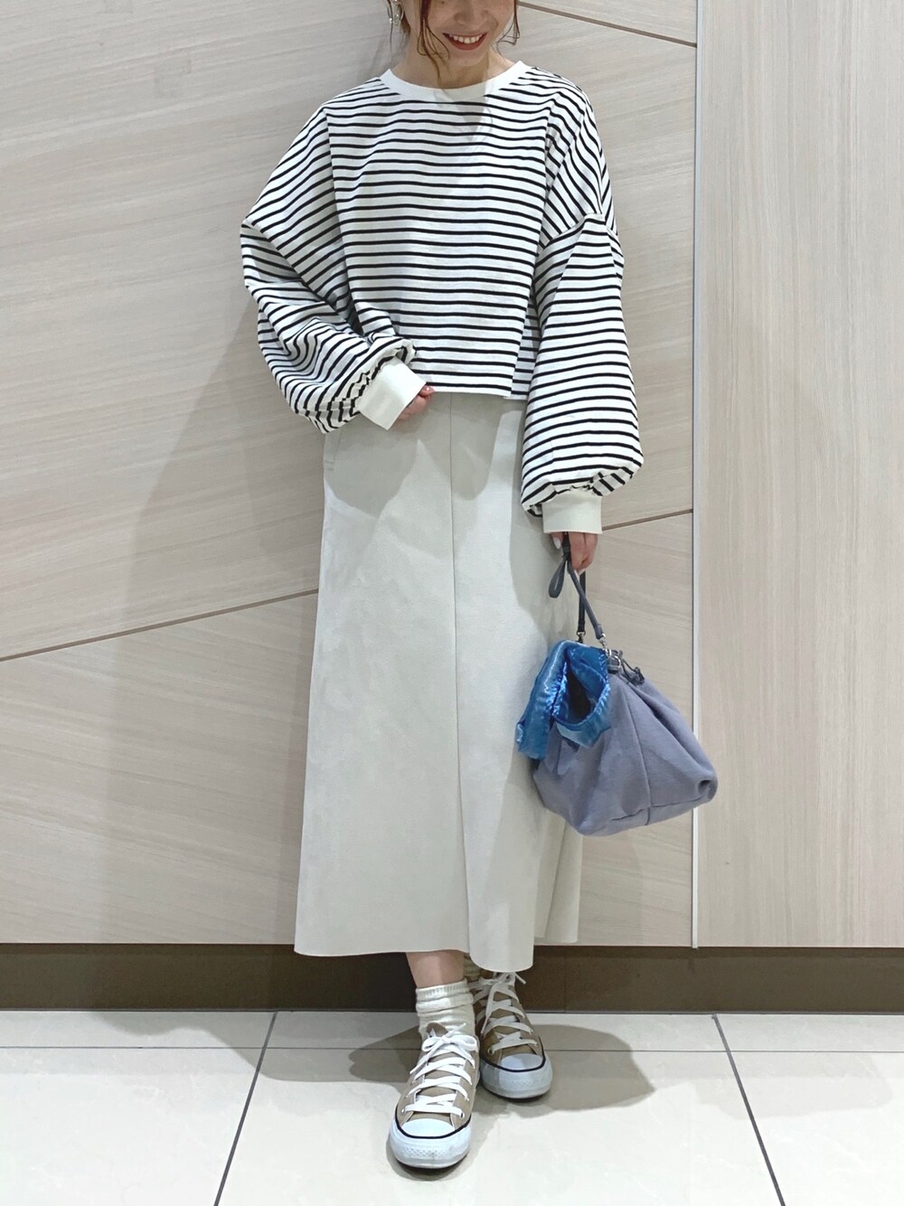 爽やかボーダー!! ショート丈×ナロースカートで細見えコーデ◎ Instagram @__.shuri___