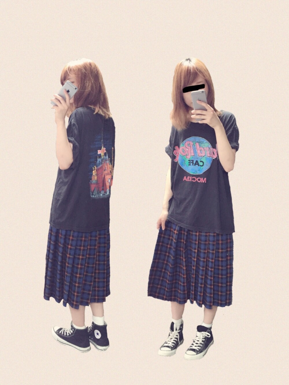 夏にタータンチェックは暑苦しいけど 黒のTシャツと合わせたかったんです 昔のかとぅーんの衣装みたいやね って言われました( ´・‿・`) Tシャツインするよりゆるっと着たほうがすき