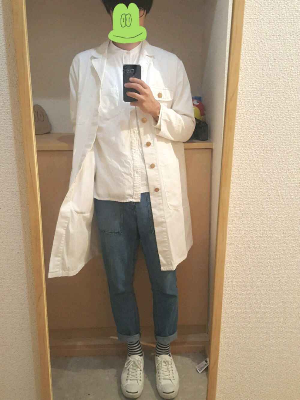 上着…古着。 しゃつ…無印。 ずぼん…毎日日曜日。 靴…ジャックパーセル。 10月15日…雨の日。ドロヘドロ大人買いした。