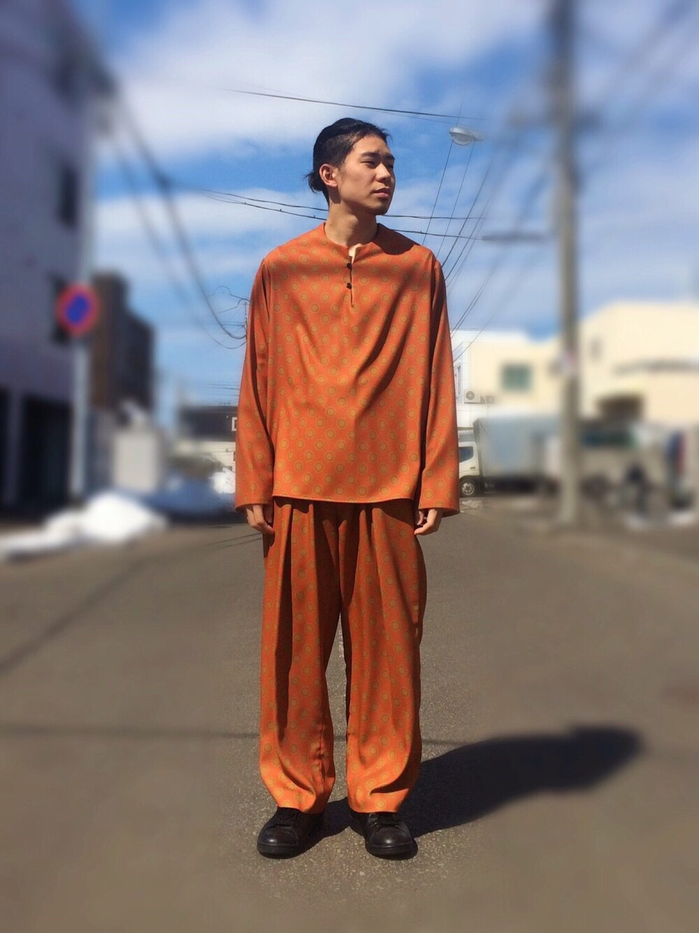 いつもいいねやセーブ、フォローなど ありがとうございます😊 とても嬉しいです😆 今日のコーディネートは オレンジマンです🍊 オレンジ色が眩しいセットアップで サイズ感はゆったりしています✌️️ アフリカンな柄のはずなのですが チャイニーズ感が出ちゃってます😅 でも、これはこれで好きです👍笑 これからも更新していくので よろしくお願いします🙇