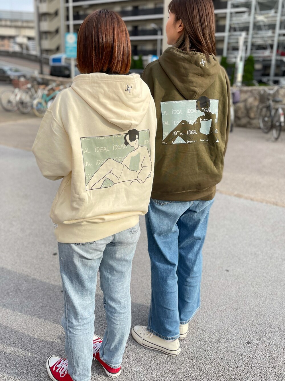 友達とペアにも使えます☺︎ パーカーのバックプリントのイラストが可愛い!!色もコーデのポイントになりますね✌🏻 Instagramも覗いてみてください☺️