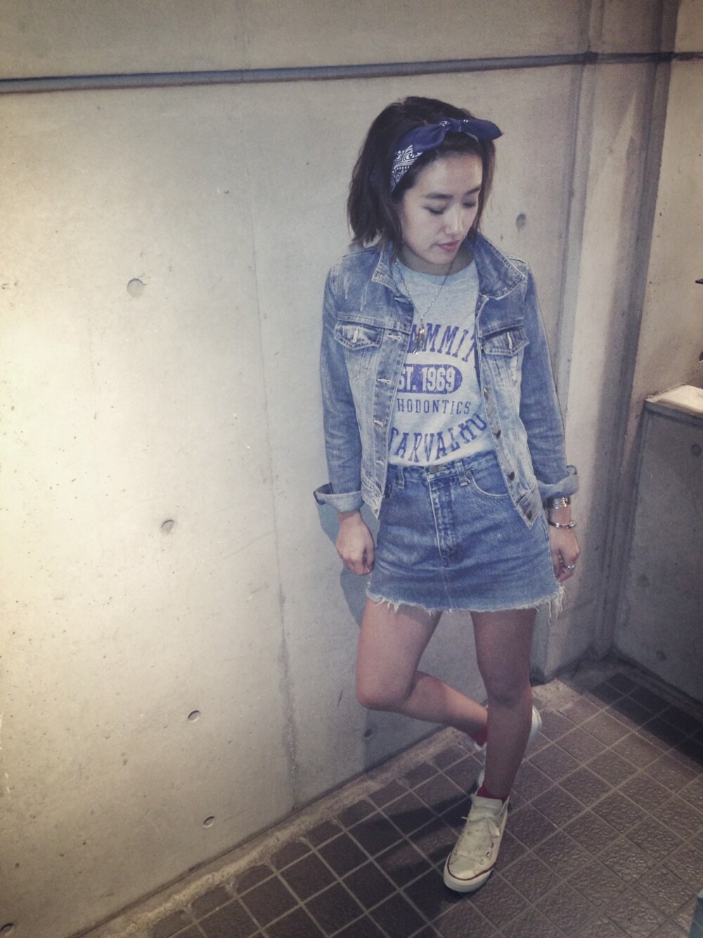 good morning!! とてもいい天気 デニムセットアップに バンダナ巻いてみました