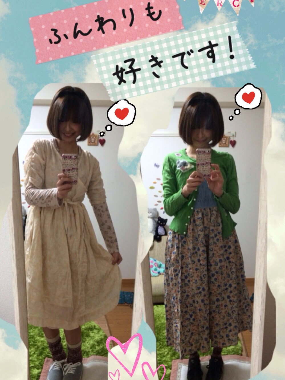こんな格好も実は好き(^∇^)♪ でもスタイルをよく見せたいってのがいつも先をいってしまう…笑 ふんわりした感じも好きだなぁ…