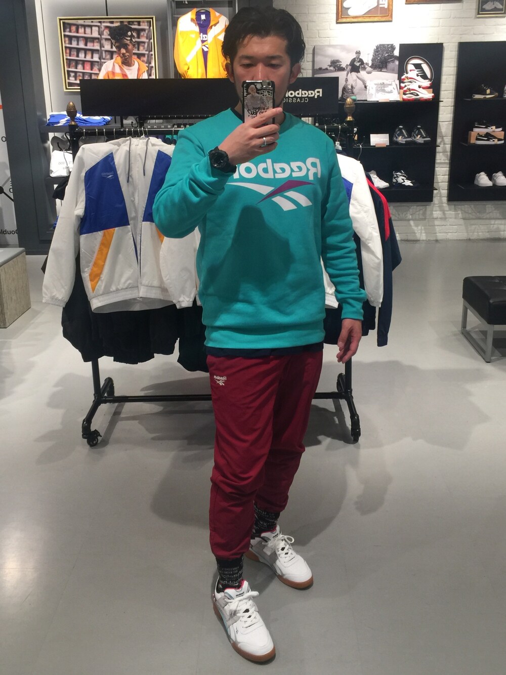 昨日の夜に考えたコーデ。新作のスニーカーワークアウトプラスATIを履きたくて。ライムグリーンとバーガンディーのアパレルに白で爽やかにまとめました。色と色の合間にネイビーのインナーやブラックのハイソックスを差し込んでいます。