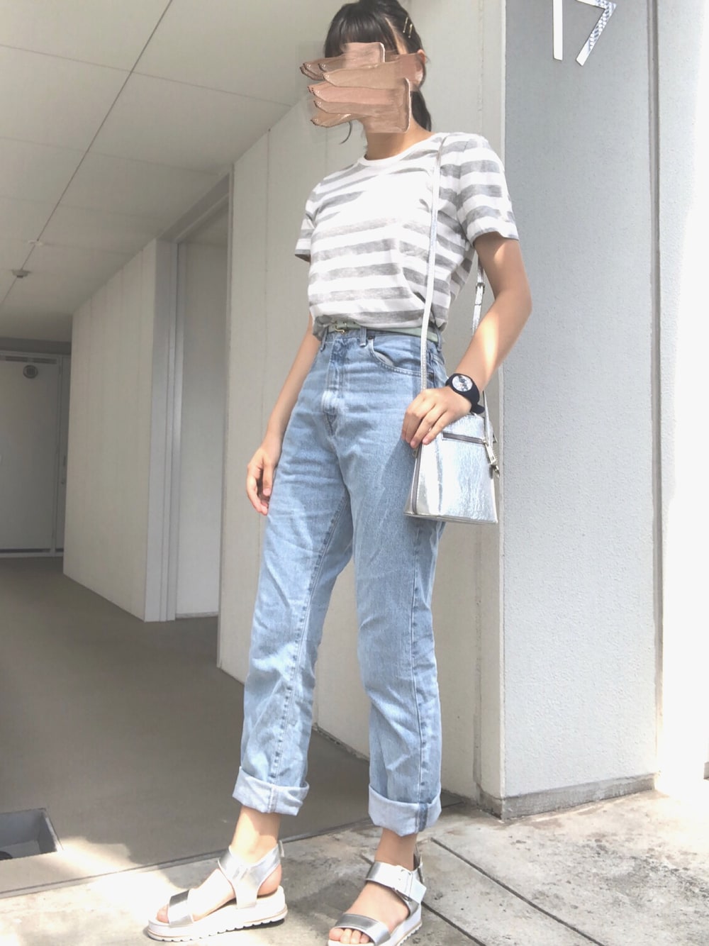 ▫️今 日 の 私 の コ ー デ 𓀡 ✧無印良品で珍しくTシャツを買ってみま した!今、ボーダーのTシャツが流行っ てますよね! ✧そして小物はシルバーで統一しました! シルバー大好き人間です。 ✧今日のコーデは夏らしくなりました! い い な ♪ と思ったらいいねとフォローよろしくお願いします🥀