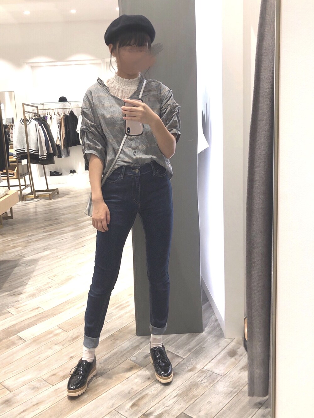 a y u k a ''のシャツ/ブラウス「袖タックフリル襟チェックブラウス」を使ったコーディネート