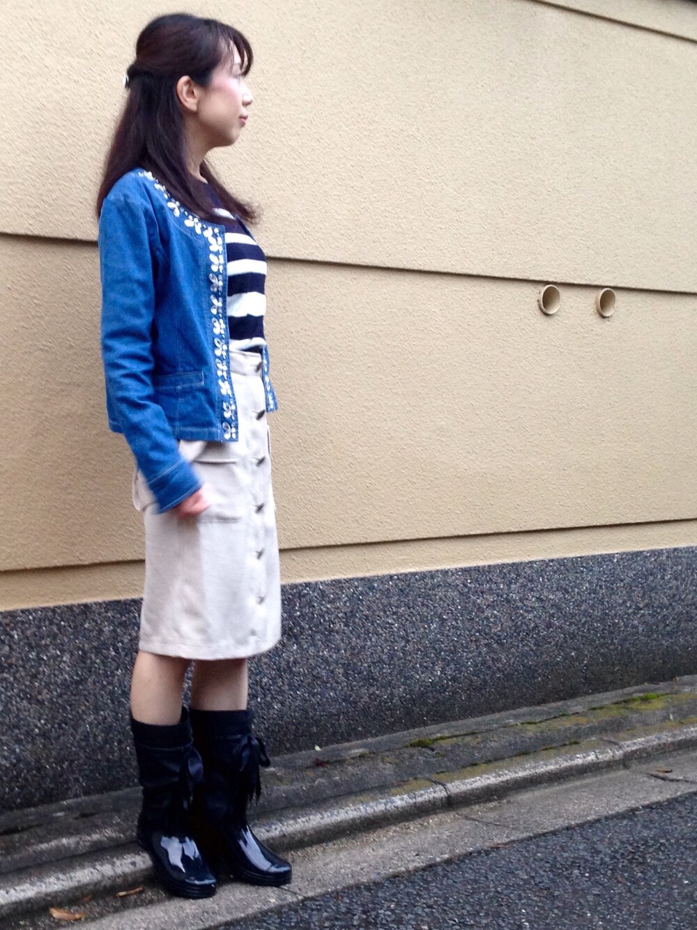 台風の影響で朝から雨だったので、レインブーツでお出かけ(●´⌓`●) このデニムジャケットはビジューの可愛さに一目惚れして購入♬ サスペンダー付きのスカートもお気に入りです(*˘︶˘*) 朝玄関を出て朝顔が咲いてると癒されます(๑´ᴗ`๑)