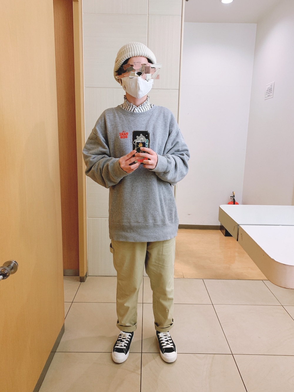 今日は近場移動のためサルエルを履きました。お気に入りですが階段とか激しい移動はちょっときついので近く散歩したりする時に履きます笑 上のスウェットは昨日に続けてHANZBONです。