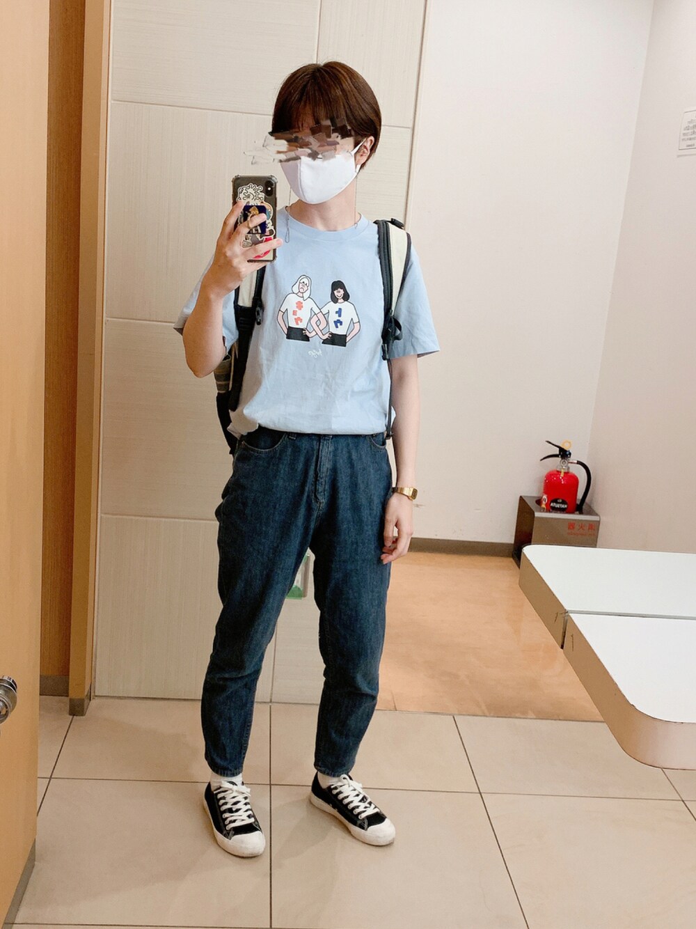 マスクチェーンは友達が作ってくれてお気に入りです😷 トウキョウを掲げて近所でワクチン打ってきました。夏、休みの日はほぼTシャツにパンツです笑