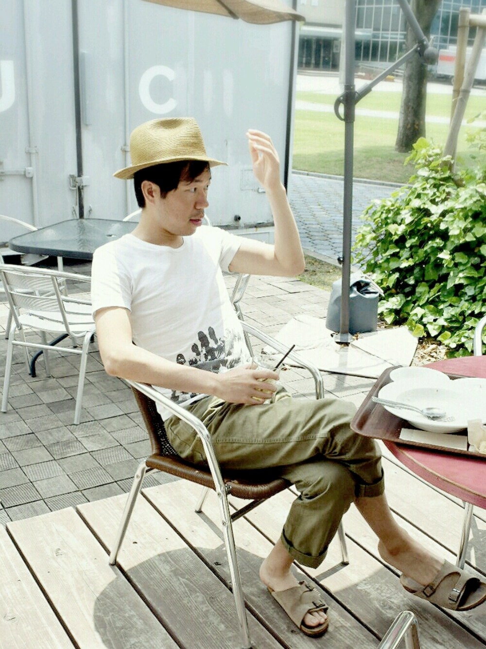 オープンテラスでの食事🎵解放感があり好きなんです。 気持ちまでopenになります。 openついでに㊙暴露しちゃいます。 すね毛薄いんです。