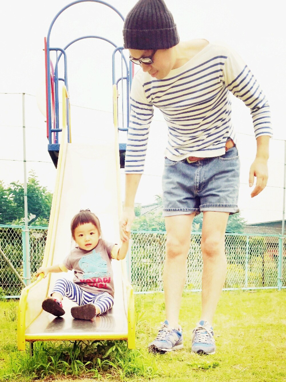 梅雨でなかなか外で遊べないなか久しぶりにはしゃいできました! 見てください!!このいい父ちゃんぶり🎵 自画自賛でございます! さりげに娘とボーダーおそろいです! 「お父さんと洗濯物は別に洗って」と言われるまで仲良くしてもらいたいと思います💓