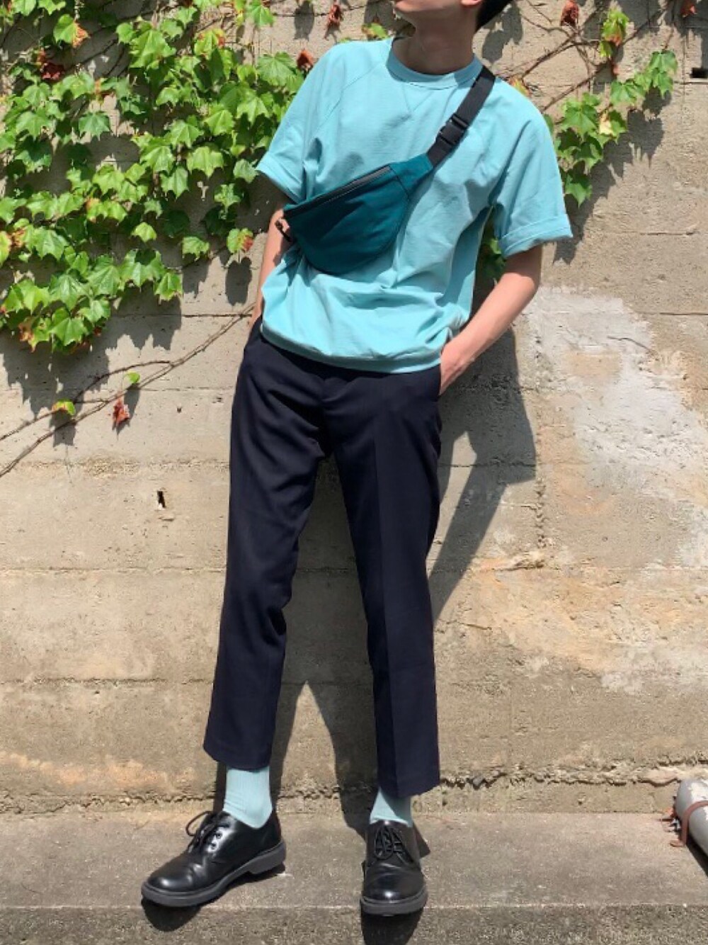 友達のコーデです!ちゃんと許可もらってます笑 グリーン系トップス×靴下の色合わせ 色がかわいい!! 一言お願いします!