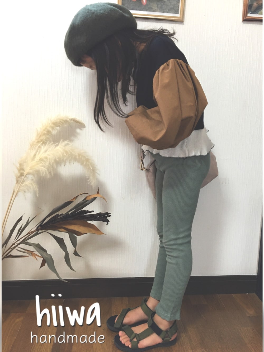 ボリューム袖のトップスをつくりました 裾がプリーツのペプラムになっていて 1枚でとっても可愛いです ボトムスはシンプルに🐘