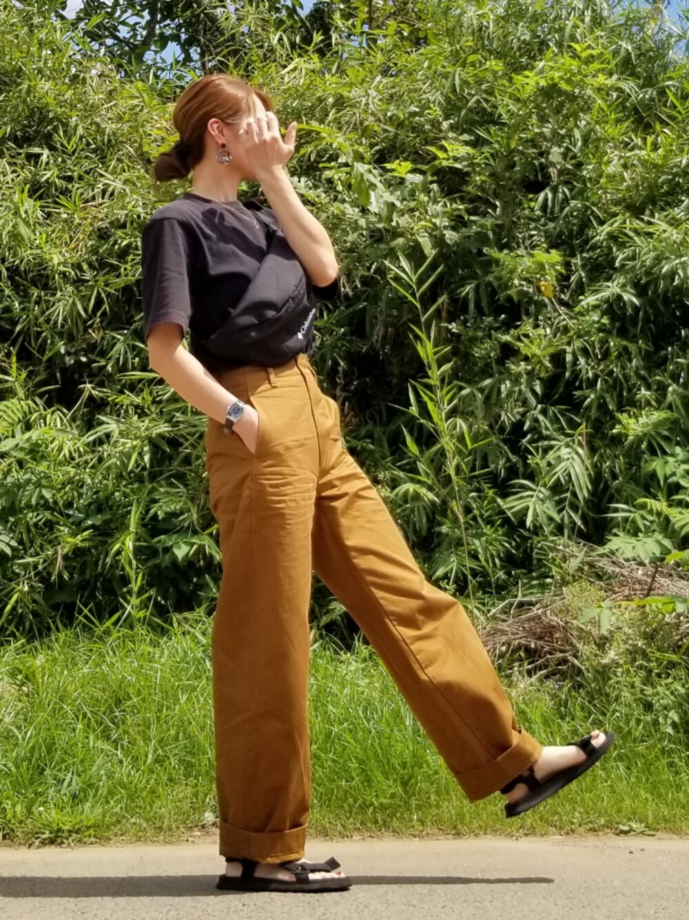 上下ユニクロコーデ☺ ワイドフィットカーブパンツ ホックとめにくい~ けどやっぱり好き😽