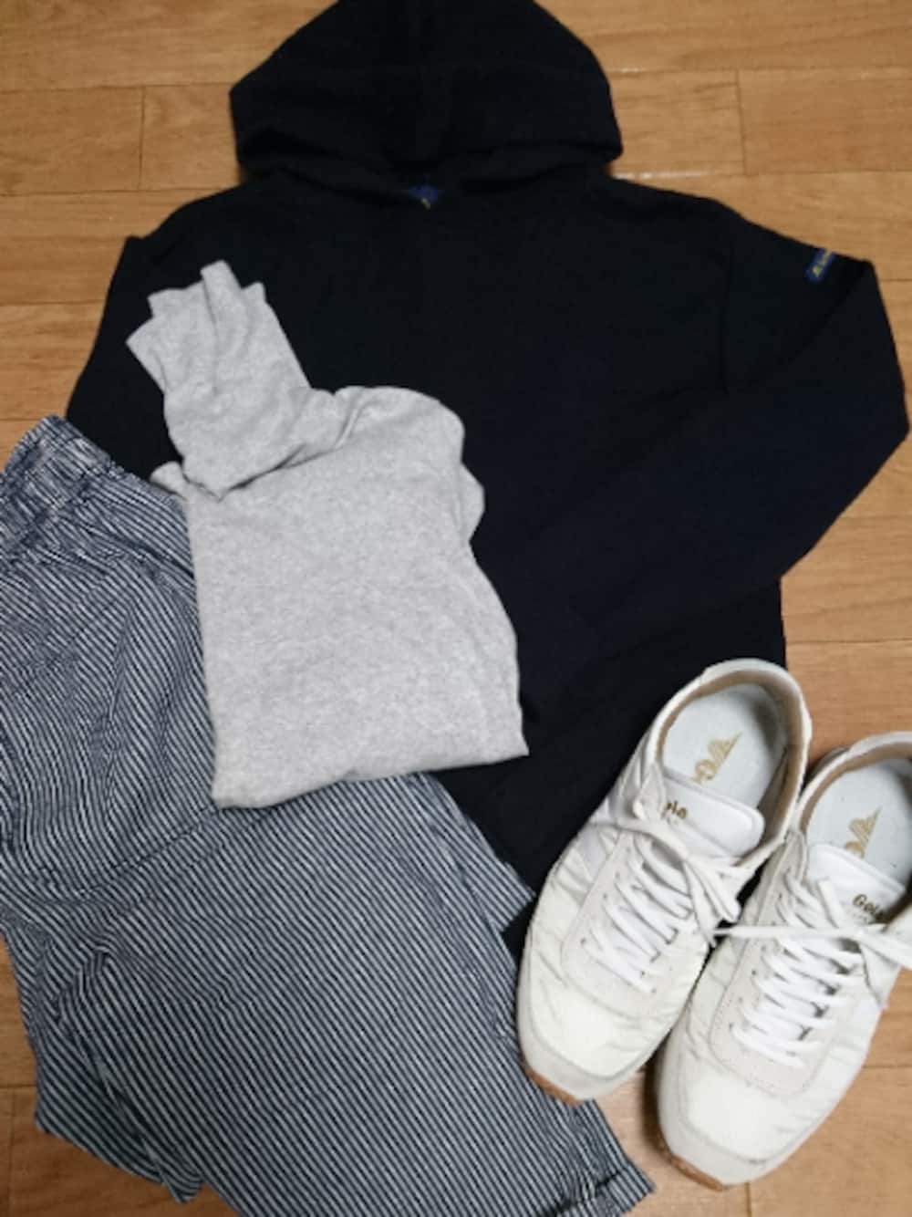 今日のコーデ シェフパンツを今度はマリンスタイルを意識して もうすぐ12月だと言うのに、温かかった