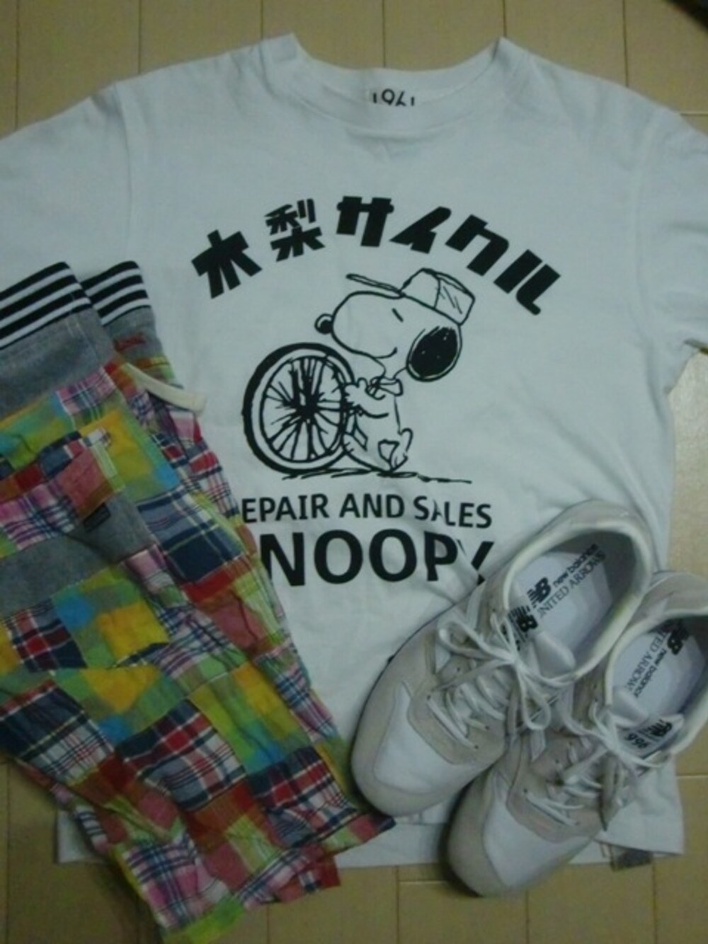 久々に着た、木梨サイクル × SNOOPY Tシャツ。 いつも沖縄旅行の時に着ているけど、今回は別の場所への旅行で着ました。
