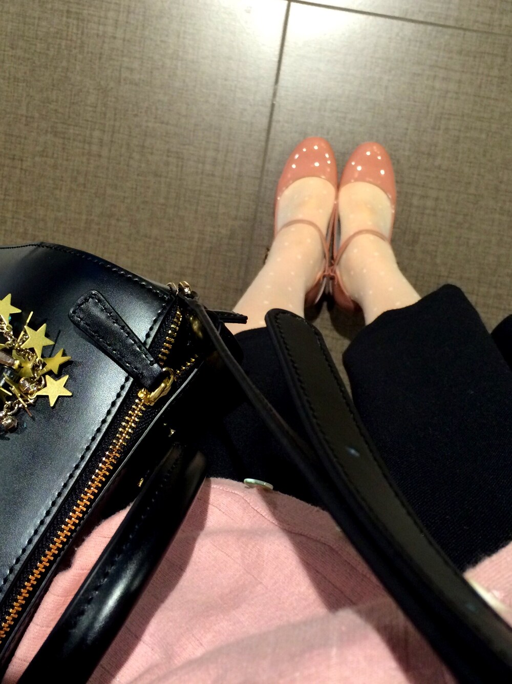 桜ピンクが着たい気分でした🌸 新しい黒のバックを合わせて、カッコよくさせてみました🐰 東京駅をお散歩してきました♫