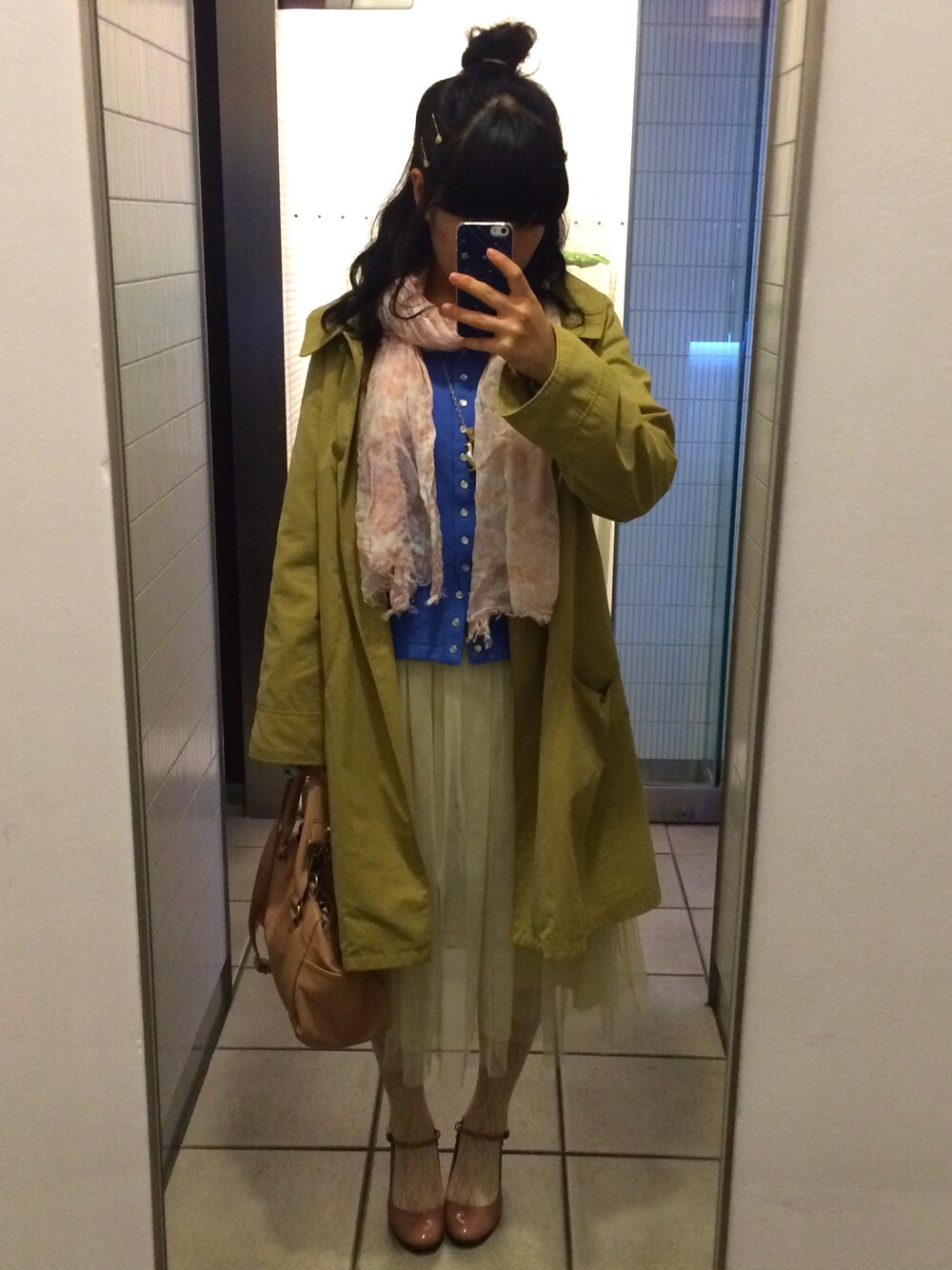 桜のストールを巻いて、夜桜をみに行きました🌸 大好きなピンクと水色でまとめてみました。春のパステルカラー♡