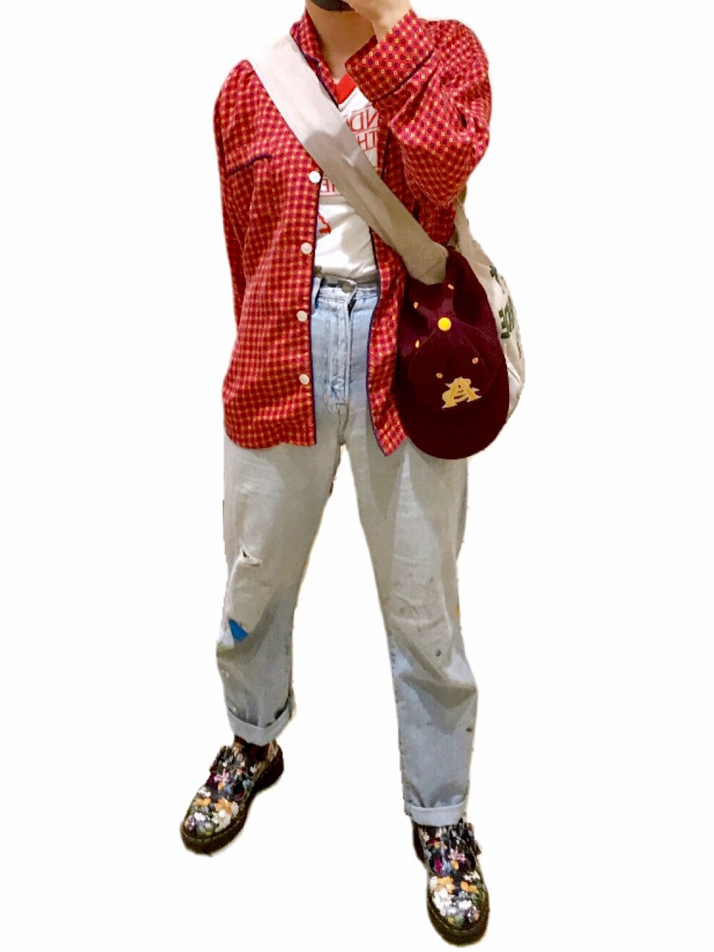 87のデニムパンツ「VINTAGE 801J ジャストウエストストレートオリジナルセルヴィッチデニムパンツ」を使ったコーディネート