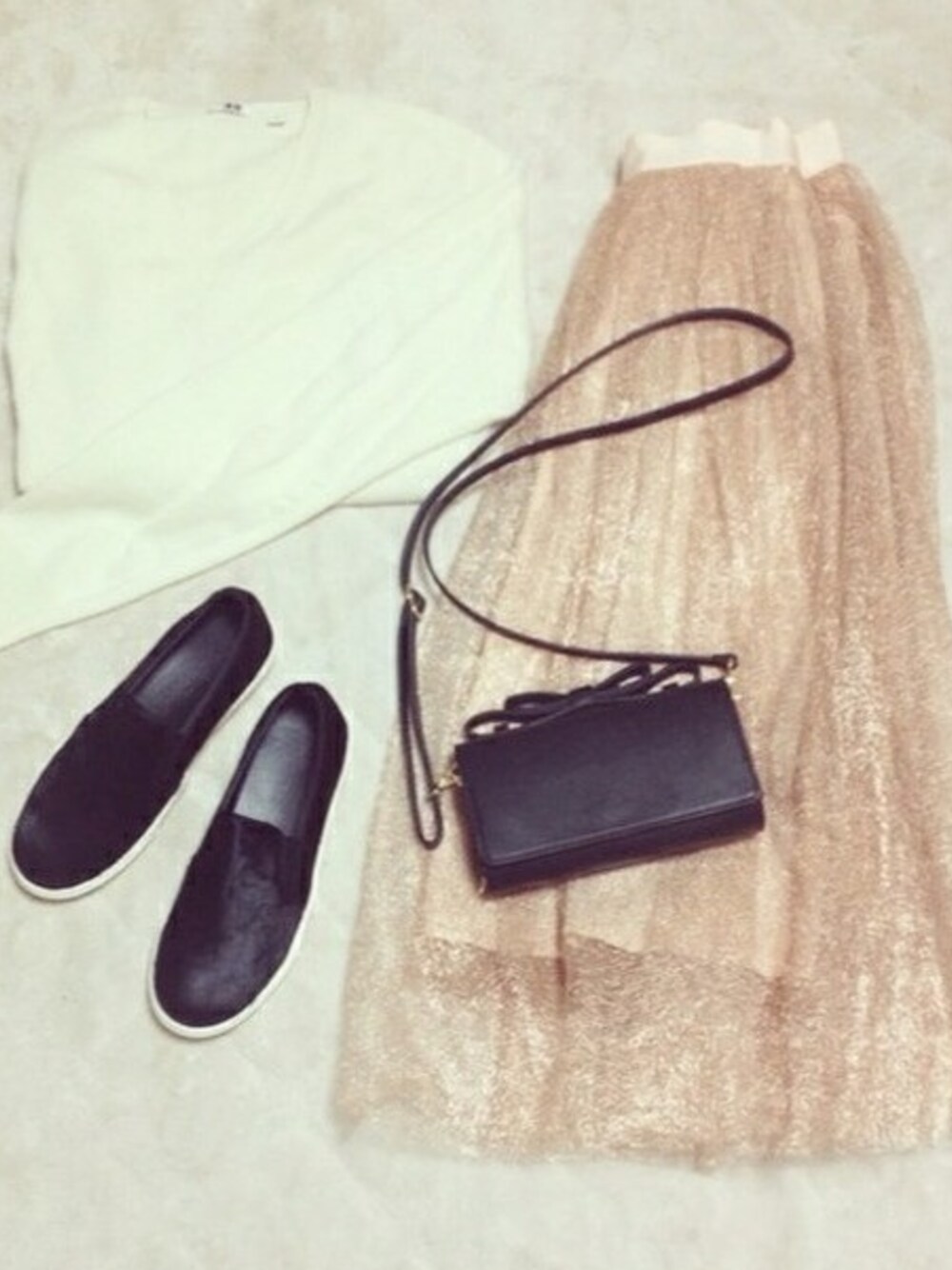 omekashiのチュールスカート💓 ニット UNIQLO スカート omekashi シューズ antie rosa バッグ FRAY.ID