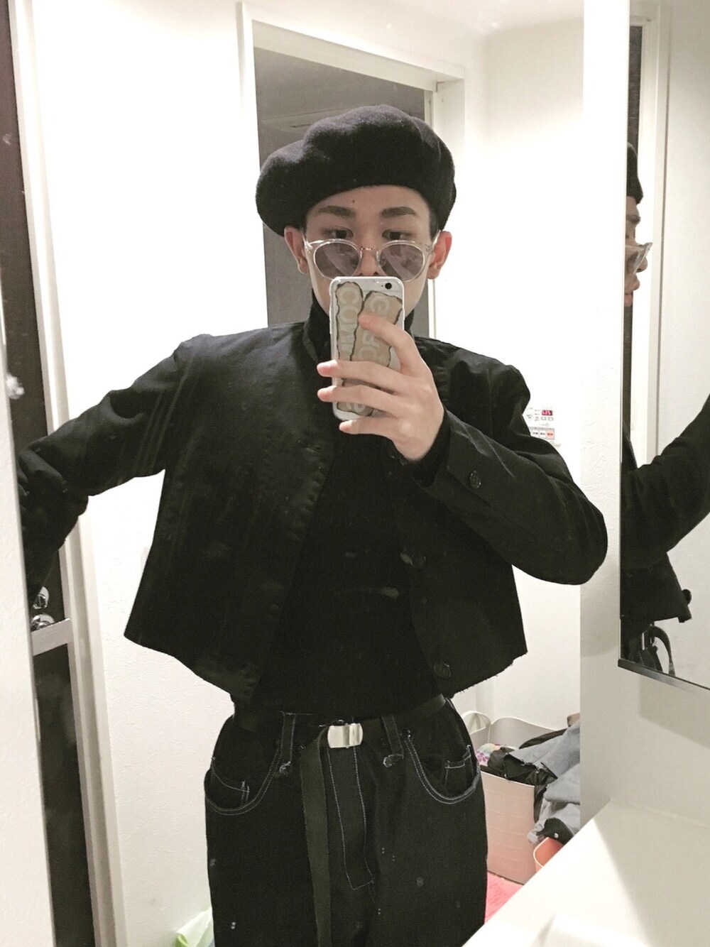 ファクトタムのコート35000円したけど絶対ショート丈のほうがかっこいいから思い切ってぶった切って作った自作モノです あとiPhoneケースもギャルソンの袋を切って燃やして作った自作モノです
