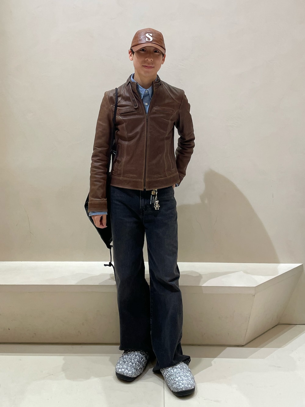 ライダースに合わせてキャップもブラウンレザーにしました。 上からトレンチコート等と合わせてもかっこいいと思います。