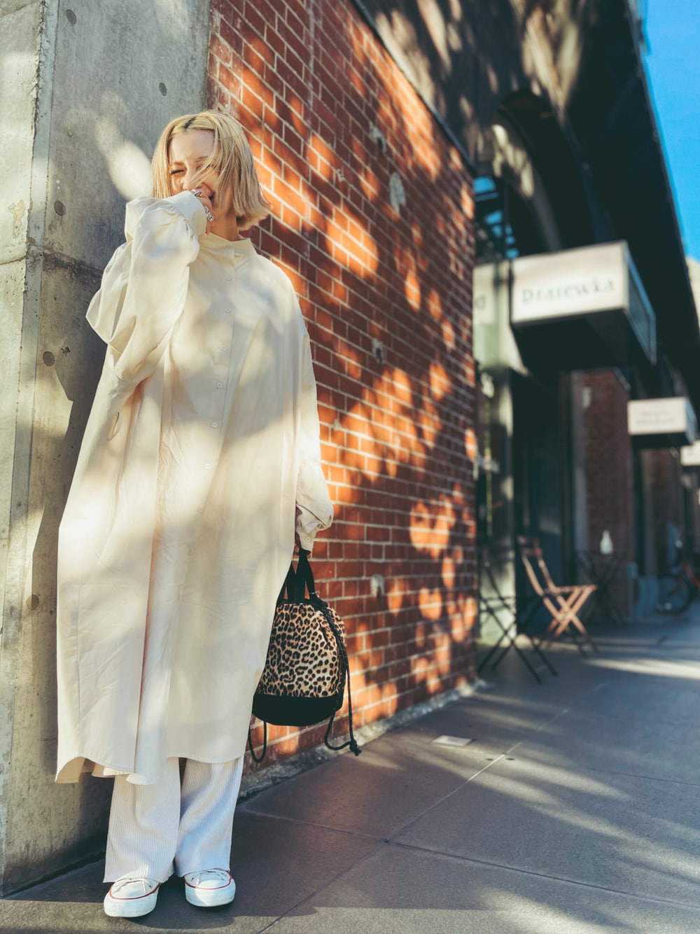 Shiho.Cのショルダーバッグ「GREGORY/グレゴリー 型止CINCH BAG M/型止めシンチバッグMサイズ(レオパード柄巾着バッグ)」を使ったコーディネート