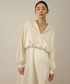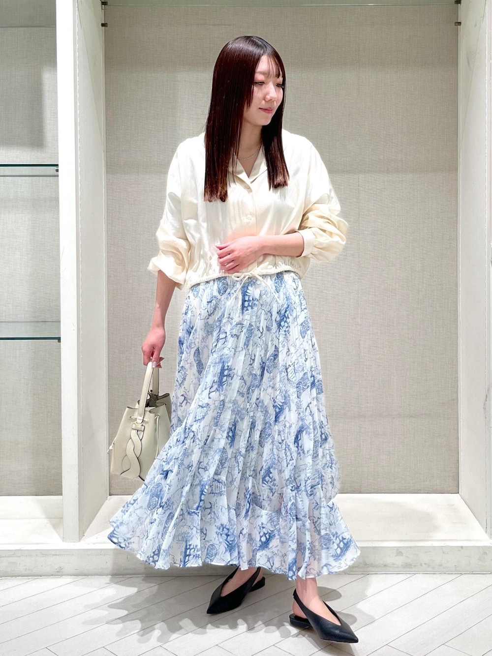 ホワイトとブルーの組み合わせで春の爽やかさをフェミニンスタイルで表現してみました。 ブラウスはドルマンスリーブで女性らしい柔らかなラインと、襟元のVネックデザインがスッキリした印象に仕上げてくれます。 ボトムは透け感と張り感のある素材に、タックプリーツを施すことで、立体感と表情のあるシルエットになっており、大人上品なスタイルにピッタリな1枚です。 ぜひチェックしてみてくださいね。 ※店頭及び屋外での撮影画像は、光の当たり具合で色味が異なって見える場合がございます。 商品の色味はスタジオ撮影の画像をご参照下さい。 *LINE接客承ってます! 聞きたいことはあるけど電話するお時間がない方や この時期なかなか外に出られない方など。お取り置きやお取り寄せ(eコレクト)もお伺い出来ます! 是非、お気軽にメッセージ送ってください。 *LINEでエスパル仙台店スタッフに相談は【友達追加】をタップしてください。 <a href="https://lin.ee/xnnaeMY"><img src="https://scdn.line-apps.com/n/line_add_friends/btn/ja.png" style="width:116px; height:auto; border:0"></a>