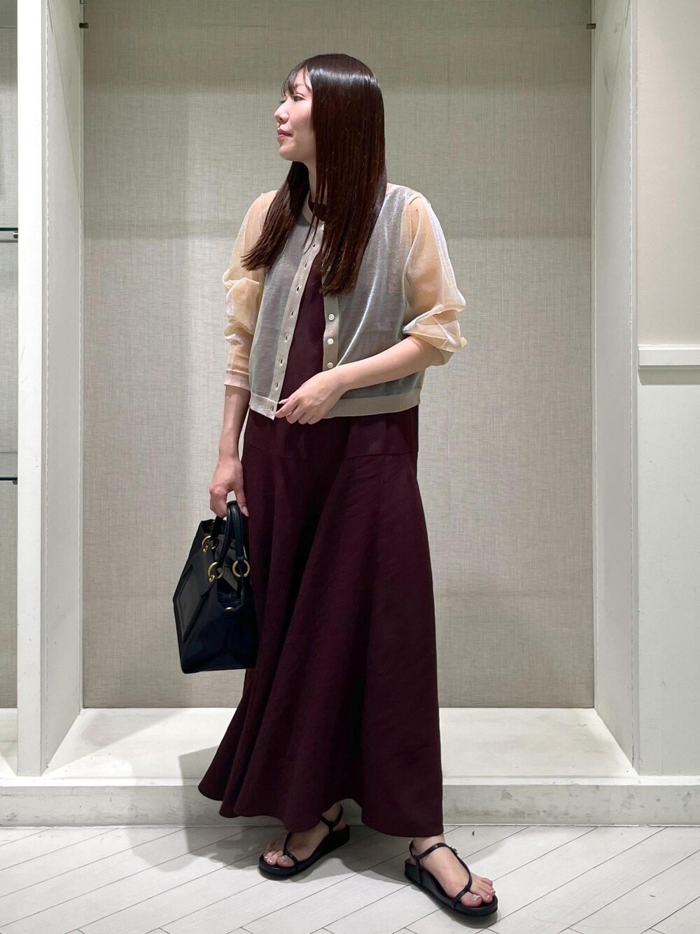 シンプルな綺麗めワンピースは、スカート部分がバイアスデザインなのできれいなドレープになっていて大人上品な印象に◎ オーロララメのカーディガンは着丈の長さがウエスト位置くらいでバランス良くサッと羽織れて、シアー素材なので涼しく着用できます! ぜひチェックしてみてくださいね。 ※店頭及び屋外での撮影画像は、光の当たり具合で色味が異なって見える場合がございます。 商品の色味はスタジオ撮影の画像をご参照 下さい。 *LINE接客承ってます! 聞きたいことはあるけど電話するお時間がない方や この時期なかなか外に出られない方など。お取り置きやお取り寄せ(eコレクト)もお伺い出来ます! 是非、お気軽にメッセージ送ってください。 *LINEでエスパル仙台店スタッフに相談は【友達追加】をタップしてください。 <a href="https://lin.ee/xnnaeMY"><img src="https://scdn.line-apps.com/n/line_add_friends/btn/ja.png" style="width:116px; height:auto; border:0"></a> *Instagram rope_spalsendai