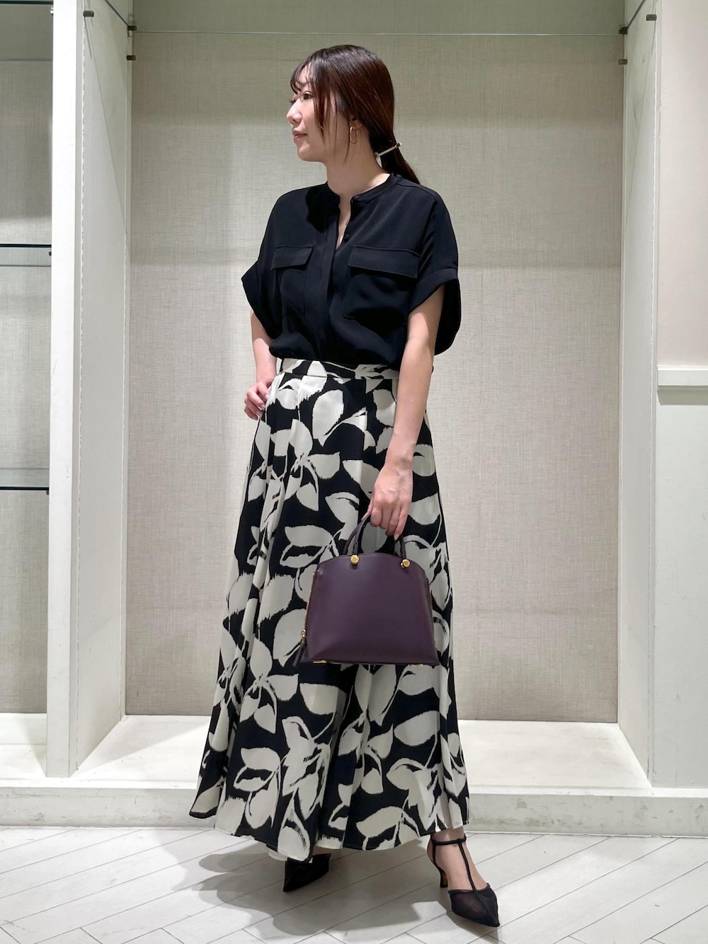 DEVEAUX別注スカートにシャツブラウスを合わせてモノトーンコーデにしてみました! どちらの生地もさらっとしており、気温が高い日でも快適にお召しいただけます。 またスカートは秋も使えるので、ニットやショートブーツに合わせてこれからの時期も色々なコーディネートが楽しめますよ♪ ぜひチェックしてみてくださいね。 ※店頭及び屋外での撮影画像は、光の当たり具合で色味が異なって見える場合がございます。 商品の色味はスタジオ撮影の画像をご参照 下さい。 *LINE接客承ってます! 聞きたいことはあるけど電話するお時間がない方や この時期なかなか外に出られない方など。お取り置きやお取り寄せ(eコレクト)もお伺い出来ます! 是非、お気軽にメッセージ送ってください。 *LINEでエスパル仙台店スタッフに相談は【友達追加】をタップしてください。 <a href="https://lin.ee/xnnaeMY"><img src="https://scdn.line-apps.com/n/line_add_friends/btn/ja.png" style="width:116px; height:auto; border:0"></a> *Instagram rope_spalsendai