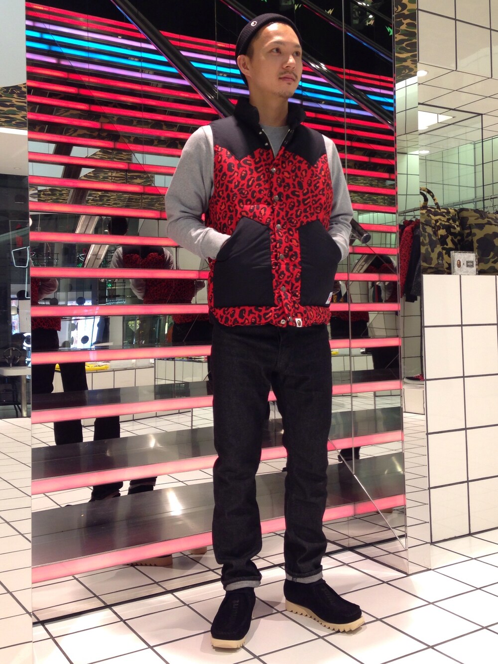 梅影 知紀のダウンベスト「LEOPARD DOWN VEST」を使ったコーディネート
