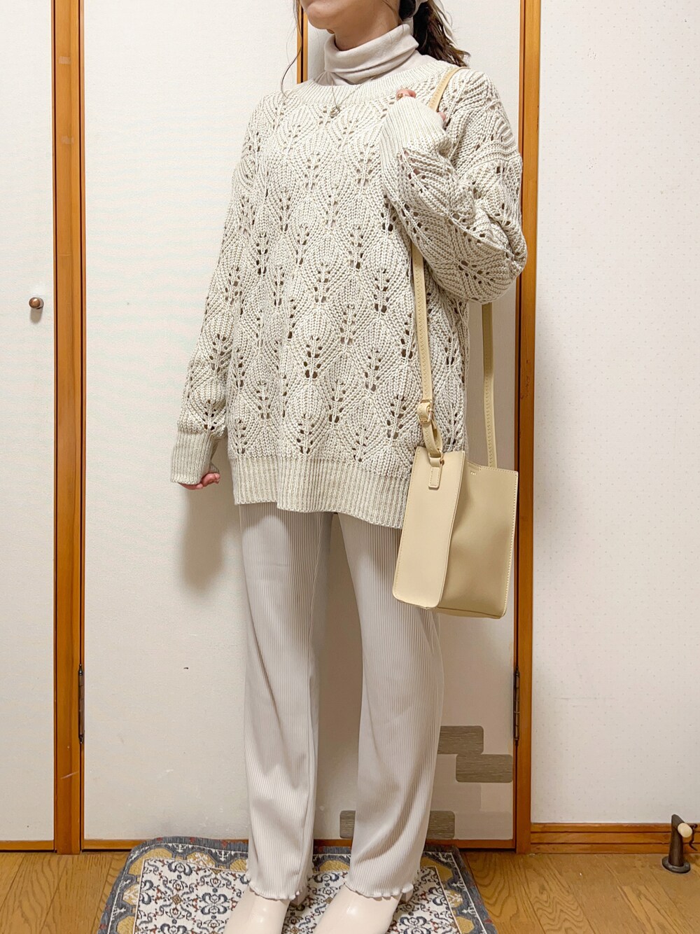 おニューのニットでお出かけ♪ 鍵編みニットでゆるっと着ました😊 中の着るのが無かったので ユニクロでヒートテックの ハイネックを購入(‷ˊᗜˋ‷) 暖かくて可愛くて大活躍してくれそう♡