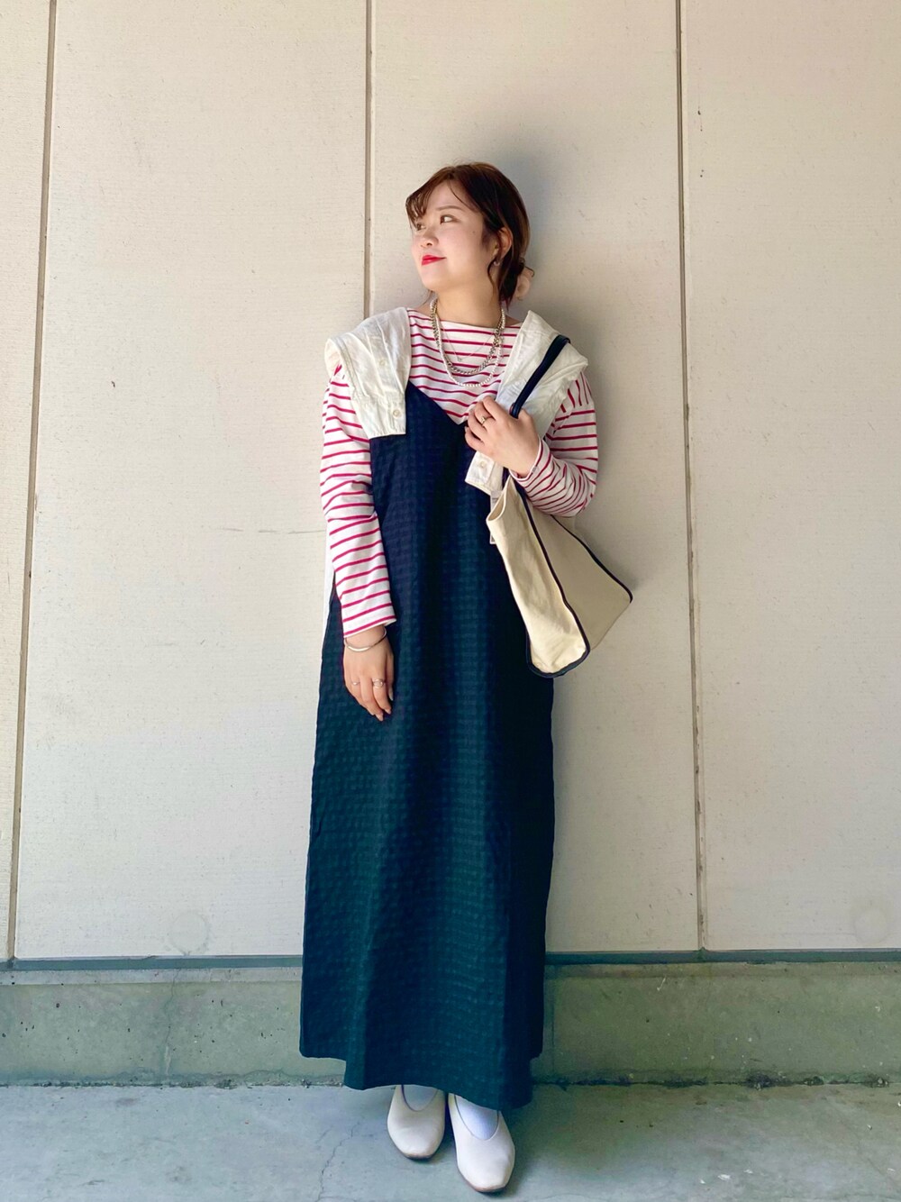 キャミワンピ×ピンクボーダー🎀 新作のキャミワンピです♥️ 下にいくにつれて広がっているので、体型カバーもできるんです!🙆🏻♀️ 大人気のサムシングのボーダーTと組み合わせるとめちゃめちゃ可愛い🙈 シャツ肩掛けで、デートコーデににピッタリです♥️ トップスフリーサイズ、キャミワンピMサイズ着用です☺︎︎︎︎
