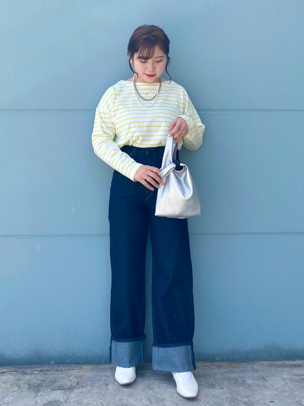 ボーダー×デニムコーデ👖🤍 大人気サムシングのボーダーT🟢 デニムとの相性抜群!!🙈 Levi's REDのhigh looseはシルエットはだいぶ太めですが、脚長効果があるのでシンプルなトップスと合わせると🙆🏻♀️ トップスフリーサイズ、ボトムス26インチ着用です☺︎︎︎︎
