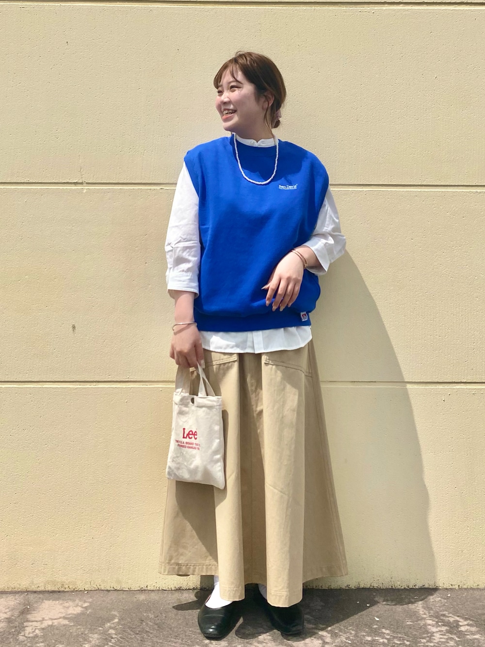 スウェットベスト×スカート💙 新作のBEN DAVISのスウェットベスト!👀 ロンTなどと組み合わせるとめちゃめちゃ可愛いのですが、私は今回SARASARAシリーズの7分袖シャツと合わせて、キレイめに寄せてみました🐒🤟 スカートと合わせて可愛く♥️ スウェットベストメンズのMサイズ、シャツメンズのSサイズ、スカートMサイズ着用です☺︎︎︎︎