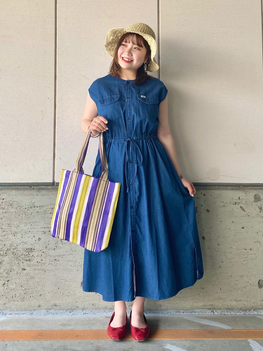 デニムワンピース💙 Leeの新作のデニムワンピースがすごく可愛い! ウエストが絞れるのでスッキリ見えて、女性らしいラインになります😚 ワンピースで着るのはもちろん可愛いですが、ボタンを開けてベストのように羽織って着るのもすごく可愛いんです🥺🥺 夏は麦わら帽子とセットで可愛いく着こなしましょう♥️ ワンピースMサイズ着用です☺︎︎︎︎