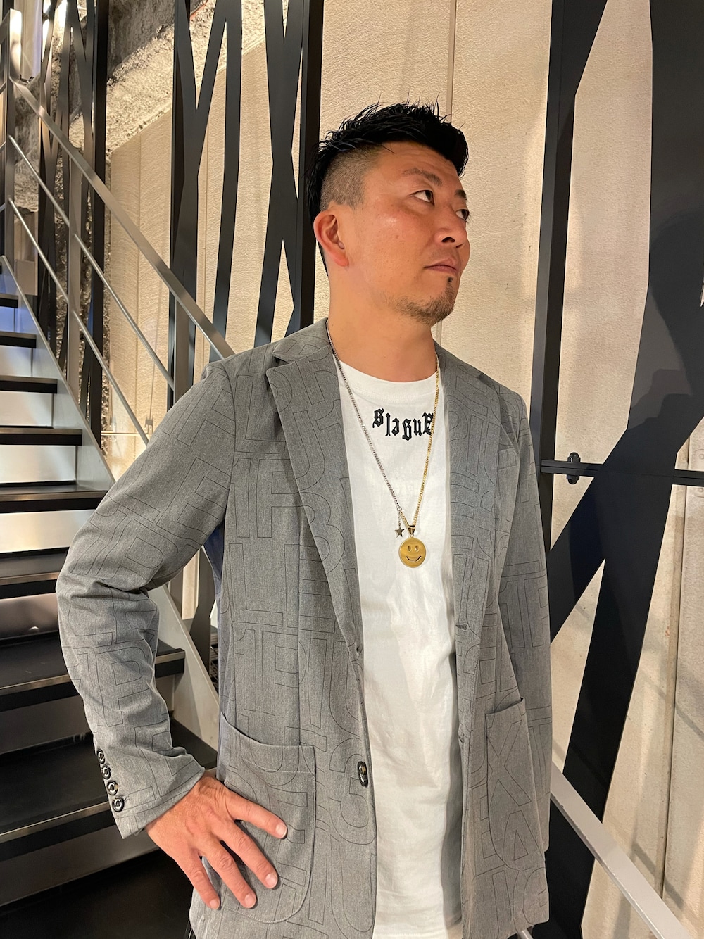 shige(ROYAL FLASH Luxury 南船場店)のテーラードジャケット「1PIU1UGUALE3 RELAX/ウノピゥウノウグァーレトレ リラックス/HORIZONTAL LOGO JACKET」を使ったコーディネート