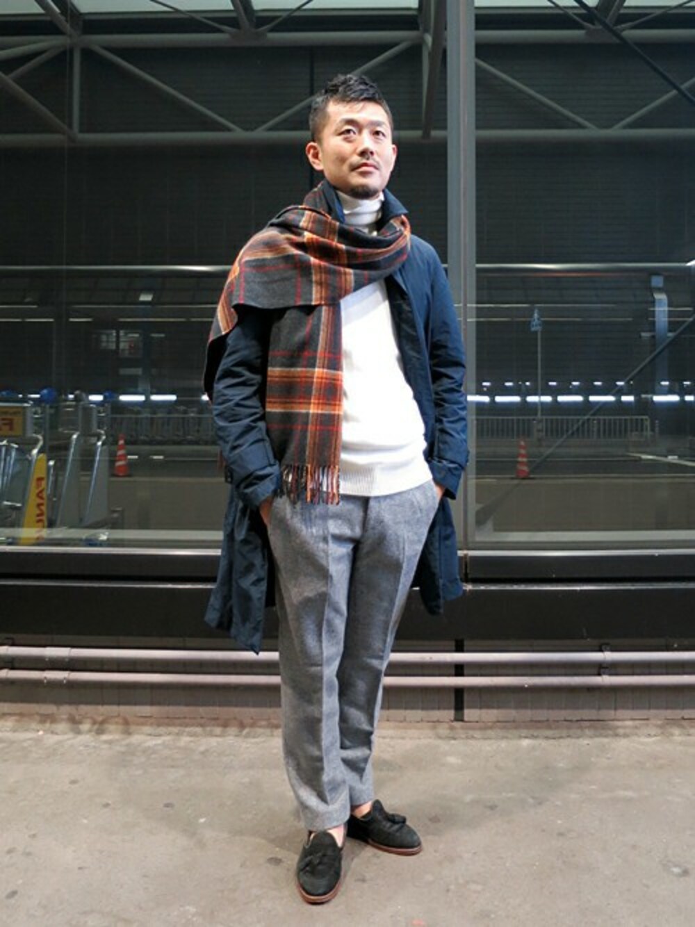 コートのインナーにタートルネックを合わせるのは定番スタイルですが、今シーズンはネック部分をきちんと折らずに、無造作にするのがポイントです。マフラーも少し大判のものを使うことで、いつもと違う雰囲気を出すことができます。小物をアクセントにしながら、これからの寒さを楽しんでいきましょう。