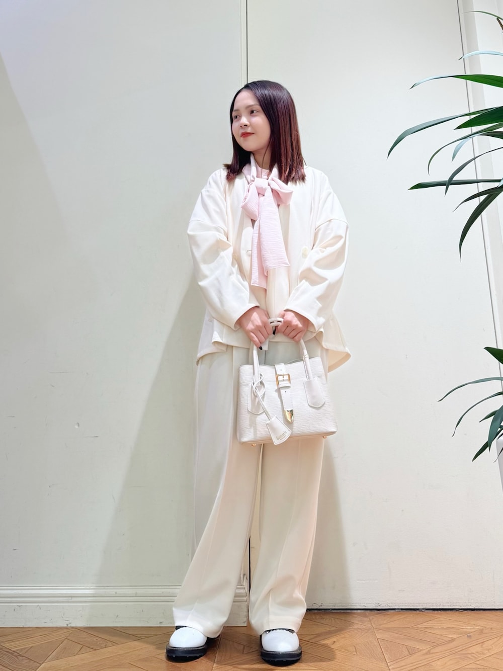 セレモニーシーンでも使えるジャケット×パンツのセットアップコーデです☺︎ インナーにブラウスにピンクを合わせて春らしくしました🌷