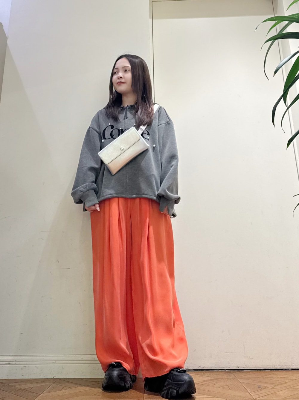 パーカーとワイドパンツでゆったりコーデにしました☺︎ パンツに落ち感があるので、ワイドシルエットでもスッキリ見えします✨