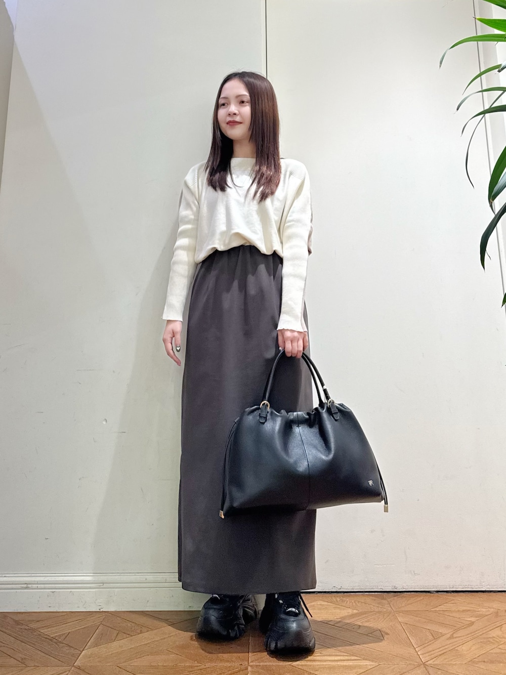 ニット 清涼感のある、しっとりと滑らかな肌触り。 前後2wayで着用可能で着回しも◎ スカート 伸縮性抜群で楽に着られる。 ギャザーが寄りすぎないスッキリとした見た目でタックインしても綺麗に着られます◎