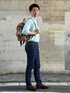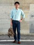 今回は同僚から餞別としていただいたラルフローレンのシャツを使用したコーディネート。 夏場は腕まくり必須で、まくる時のポイントは肘より上でまくらない事です。 ジャストサイズのデニムパンツにはあえてベルトを使用しないスタイルが上級テクニック!